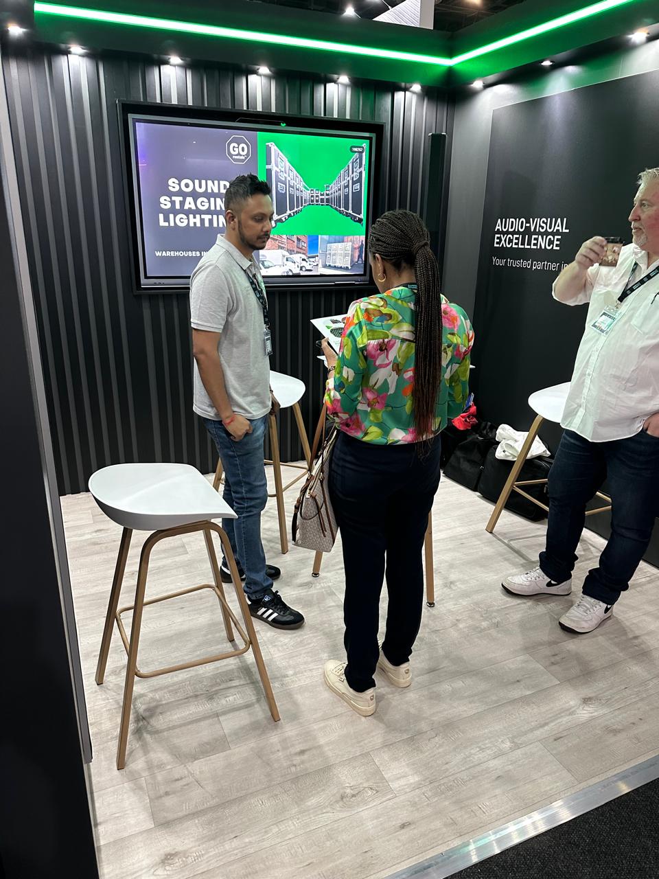 Our stand this year reflected our ongoing commitment to sustainability and smart design. Built entirely from reusable materials, we featured a 65” interactive touch display rolling reels of some of our latest work across conferences, trade shows, activations, and corporate events.